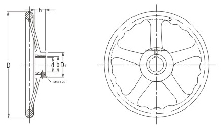JS.101011 五輻手輪 顏色:黑色 材質(zhì):增強(qiáng)尼龍 用途:適用于大型、重型機(jī)械的裝備,多用于汽輪機(jī)、船舶等行業(yè) 特性:經(jīng)濟(jì)環(huán)保、抗摔、輕巧靈便、質(zhì)感強(qiáng)檔次高。鋼制鐵芯表面處理防銹能力強(qiáng)。標(biāo)準(zhǔn)化使用,安裝簡便
