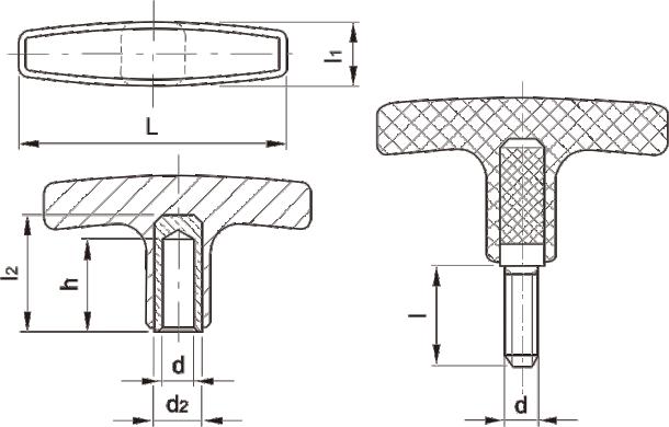 JS.102006 T型把手 顏色:啞光黑 材質(zhì):增強尼龍 用途:適用于各類機械裝備、五金工具、舞臺燈光設(shè)備等行業(yè) 特性:啞光飾面、外形美觀、機械強度高、堅固耐用、標(biāo)準(zhǔn)化使用、安裝簡便