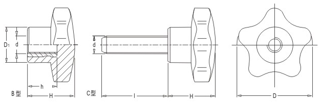 JS.102007 五星把手 顏色:亮光黑 材質(zhì):酚醛樹(shù)脂(膠木) 用途:適用于各類機(jī)械裝備、五金工具、舞臺(tái)燈光設(shè)備等行業(yè) 特性:光澤感強(qiáng)、外形美觀、機(jī)械強(qiáng)度高、堅(jiān)固耐用、標(biāo)準(zhǔn)化使用、安裝簡(jiǎn)便。