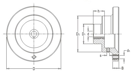 JS.105005 滿輻表盤手輪 顏色:黑色 材質:酚醛樹脂(膠木)、鋁合金 用途:適用于木工、食品、包裝、印刷等機械的精密指示或讀數(shù)調節(jié) 特性:外形美觀、堅固耐用、機械式結構、