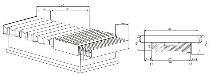 標(biāo)準(zhǔn)護(hù)罩使用在機(jī)床高立柱和大型機(jī)床長(zhǎng)導(dǎo)軌上,結(jié)構(gòu)合理,行走均勻,堅(jiān)固耐用。