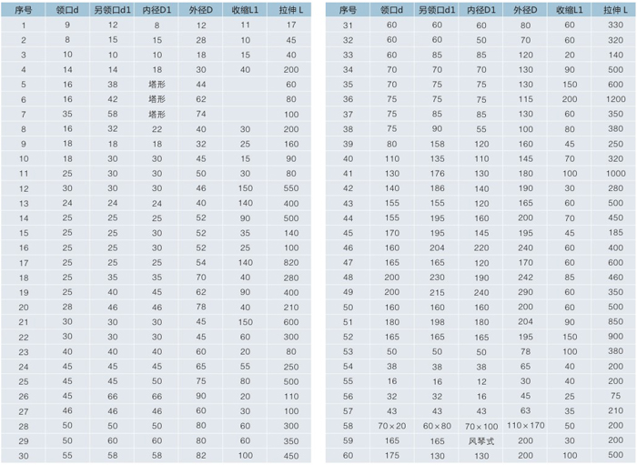 JS.107004 耐油橡膠防護套 顏色:黑色 材質(zhì):丁青橡膠 用途:適用于各類絲杠、光杠、立柱、軸類零件的保護,使其不受灰塵、油漬的污染